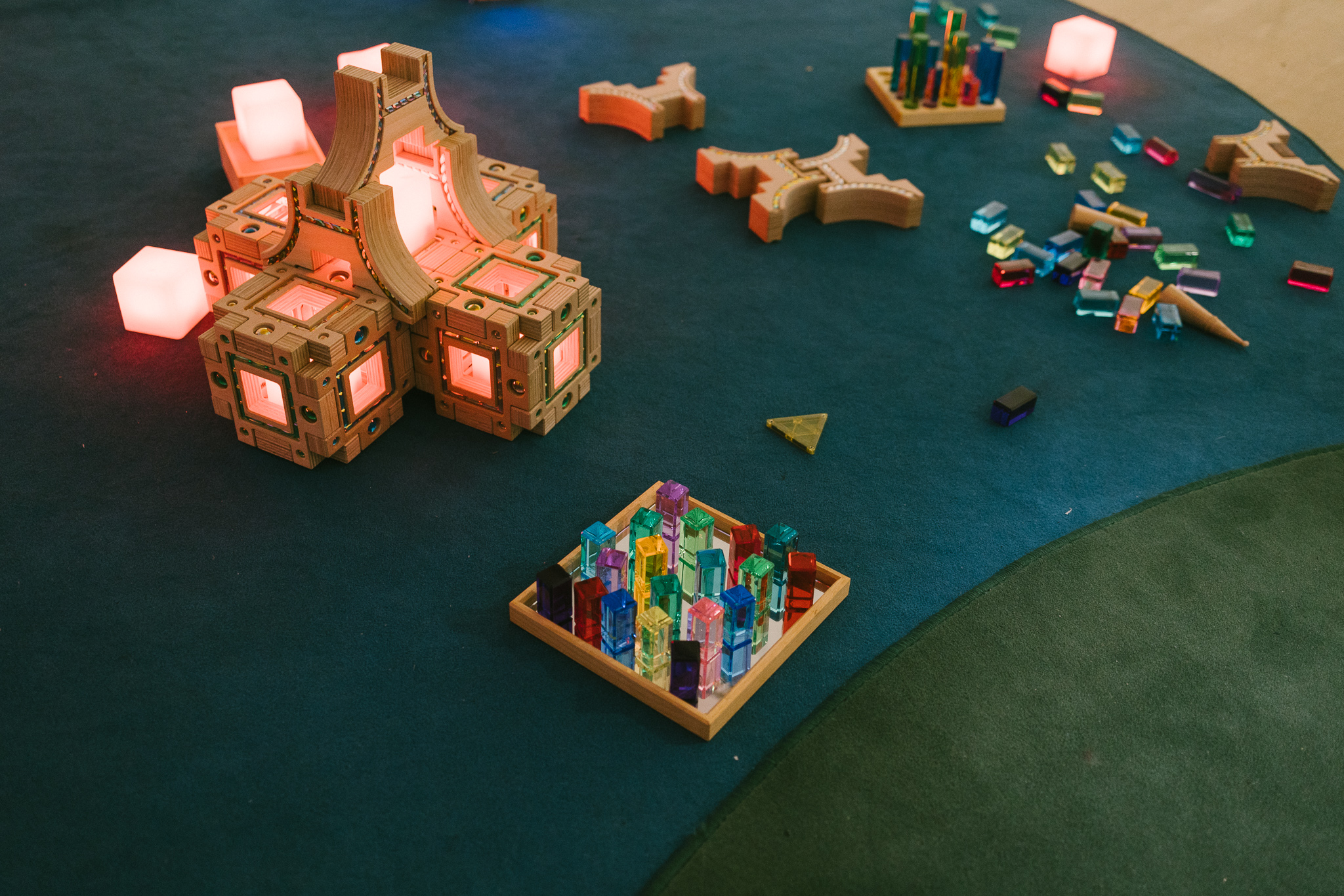 Der Projektraum erweitert die Ausstellung um einen Bereich, in dem Besucher*innen selbst aktiv werden können. An offenen Spielstationen entstehen Bezüge zur Sammlung: Formen werden kombiniert, Materialien erprobt, Seh- und Denkweisen verschoben. Der Raum versteht das Museum als Ort des gemeinsamen Forschens und Lernens mit interaktiven Situationen.