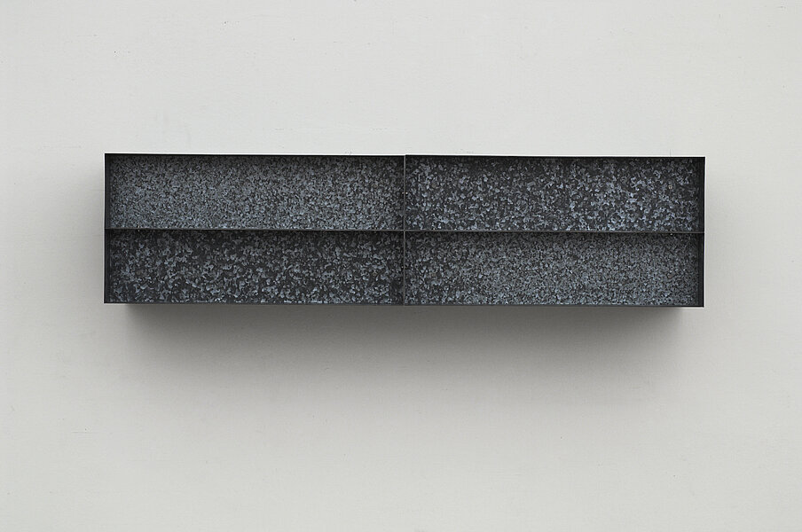 “Three dimensions are real space. Thus, the problem of illusionism is over and done with. This means being liberated from one of most obvious relics of Europeans art against which, most objections can be made,” Donald Judd writes in 1965 in “Specific Objects”, the pioneering essay of minimal art. Illusionism, authorship, and the element of time—the characteristics of traditional European art—must be eliminated to realize so called “specific objects,” objects that are reduced to pure geometrical form and to the sheer visibility of their form, and that are merely self-referential. The small metal object on the wall, created by Judd in 1989, demonstrates these principles. In this view, knowledge of a precisely yet playfully modulated geometrical order is combined with the experience that the wandering eye continuously encounters shifting perspectives, distortions, and overlapping forms. Beholders begin to perceive their own looking as a constructive act and to experience the physical object in relation to their own position within the room. Experience of the object and self-perception prove to be two related phenomena.