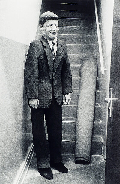 Leben mit Pop-eine Demonstration für den kapitalistischen Realismus, Ausstellung im Möbelhaus Berges Düsseldorf, 1963, Die Pappmachéfigur John F. Kennedys
