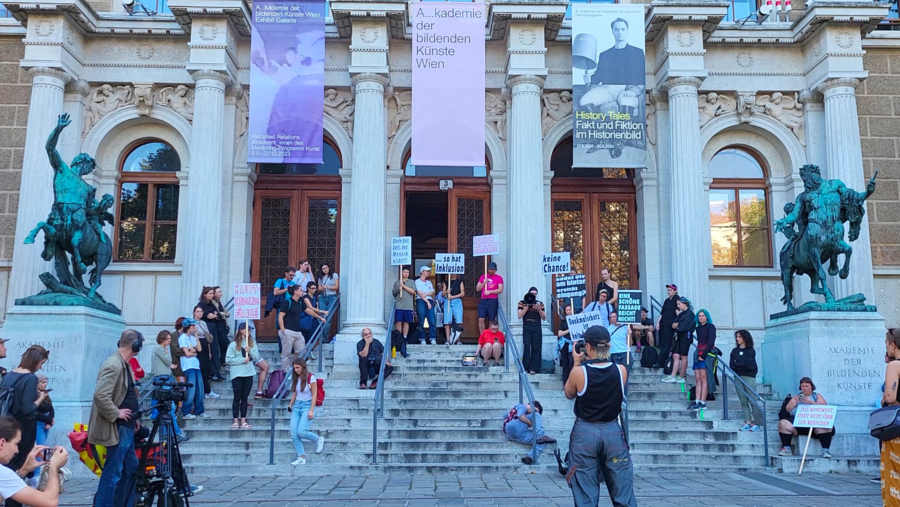 Wien, Schillerplatz, Oktober 2022: Philipp Muerling fährt im Elektrorollstuhl vor den monumentalen Haupteingang der Akademie der bildenden Künste. Als erster Rollstuhlfahrer in der 354-jährigen Geschichte dieser Institution steht er vor einem Problem, das symptomatisch ist: Der Prunkeingang ist für ihn nicht zugänglich. Er lässt sich aus dem Rollstuhl auf den Boden fallen, richtet sich zur ersten Stufe auf und versucht, sich am Treppengeländer hochzuziehen. Was für andere keine Minute dauert, wird für ihn zu einer qualvollen, zum Scheitern verurteilten Aktion. Nach etwa 15 Minuten geben seine Kräfte nach. Er bleibt auf den Betonstufen liegen.