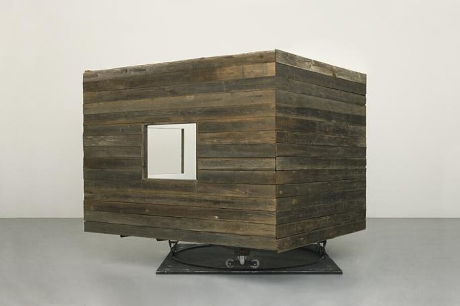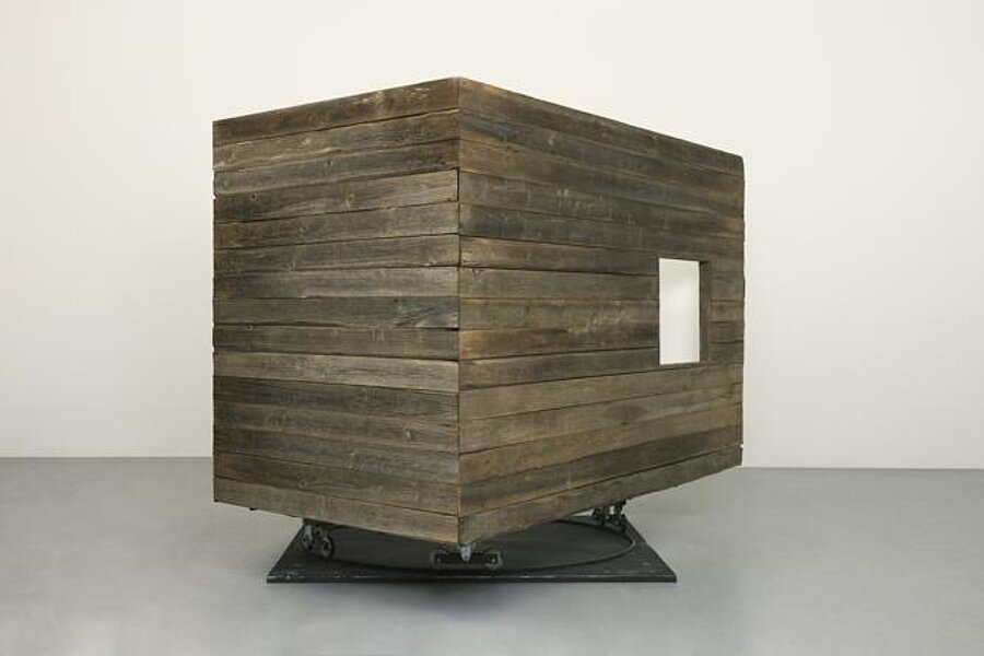| Objektbeschreibung | Holz, Motor, Rollen, Metallschiene |